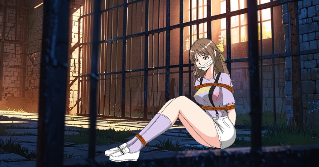 湿気と潮風が入り混じった空気の中、ひとりの少女が鉄格子にもたれ、薄暗い光の中で、手足を麻縄で縛られて、口にも猿轡を噛まされていた。