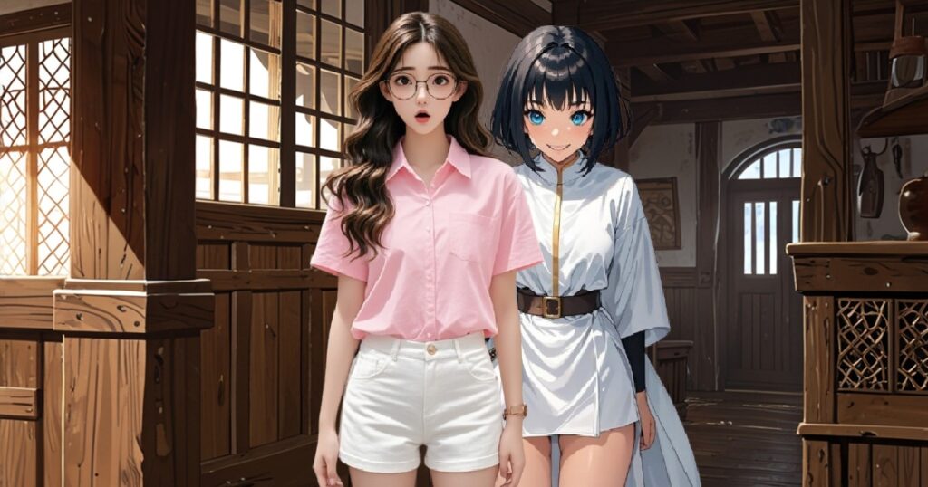 廊下背景は、Leonardo.Ai App – Generate AI Images, Videos & DesignsのモデルLeonardo Anime XL(Anime General)で生成しました。