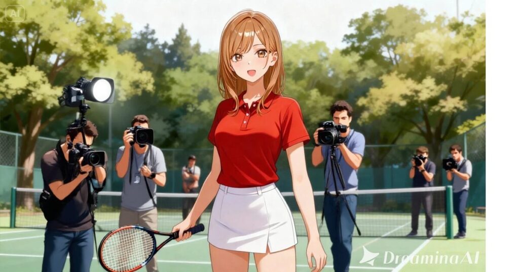 澄み渡る青空の下、緑に囲まれたテニスコートでは撮影スタッフたちが慌ただしく動き回っていた。
