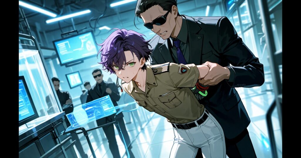 保安要員たちは詩郎を引き立て、廊下の奥へと連行していく。