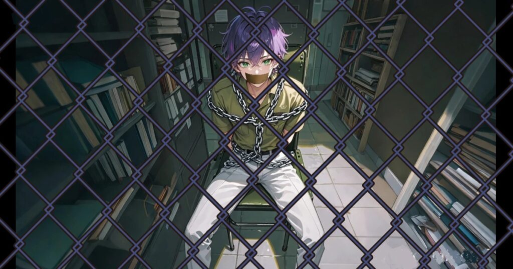 中央の椅子に寺瀬詩郎が鎖で縛り付けられ、口をガムテープで塞がれていた。