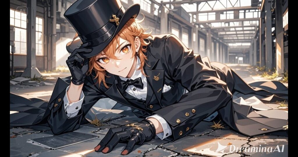 まるで怪盗ルパンを思わせる優雅な立ち姿。