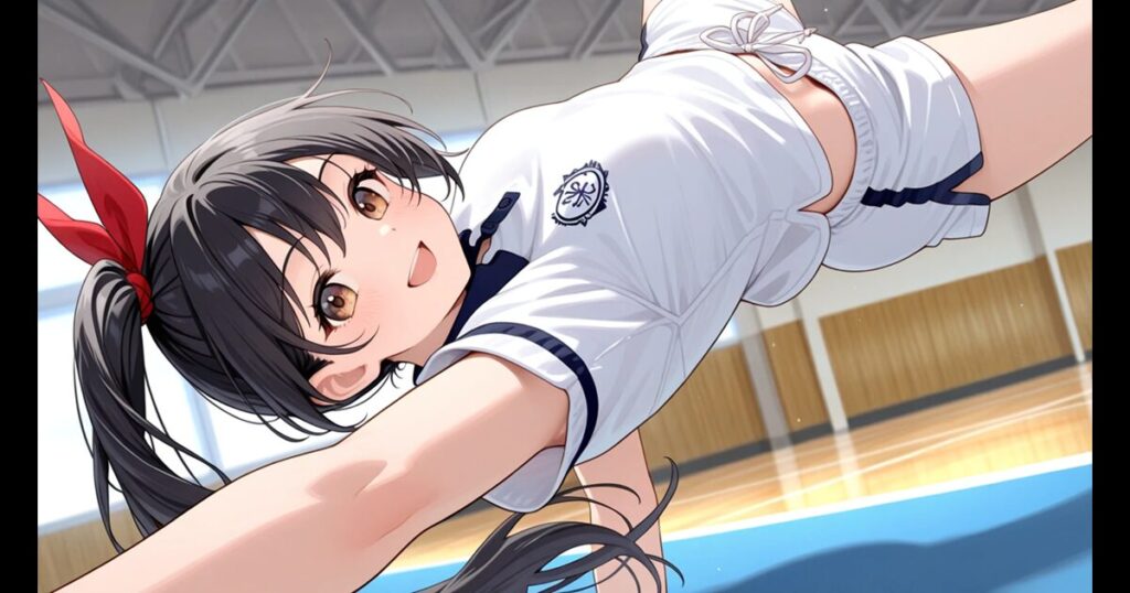 マットの上を勢いよく駆け出した相模路香は、そのまま軽々と空中へ跳び上がる。
