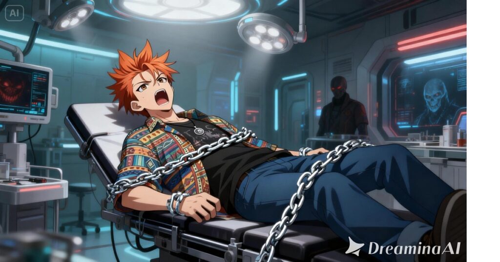 拘束された耀 斗仁威は、Dreamina: Create realistic talking avatars with AI avatar generatorで生成しました。