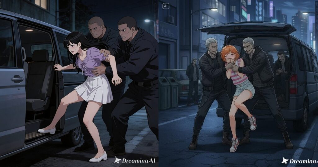 背後から別の不良たちが現れ、早弥香とルナの腕を掴む。