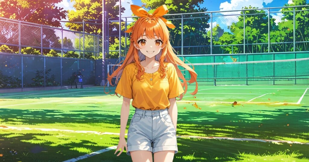 テニスコート背景は、Leonardo.Ai App – Generate AI Images, Videos & DesignsのモデルLeonardo Anime XL(Anime Genera)で生成しました。