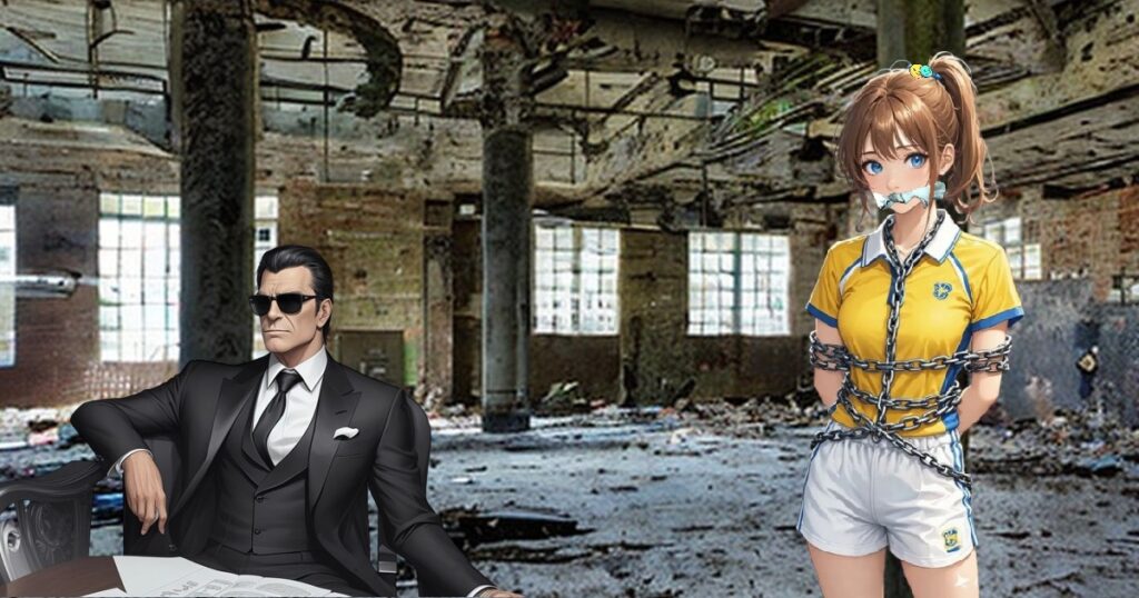 錆びついた鉄柱に鎖で縛られた漆崎亜沙美は、冷たい鉄柱に立った体勢のまま、わずかに身体をよじらせていた。両手首に食い込む鎖が、彼女の動きに合わせて小さく音を立てる。