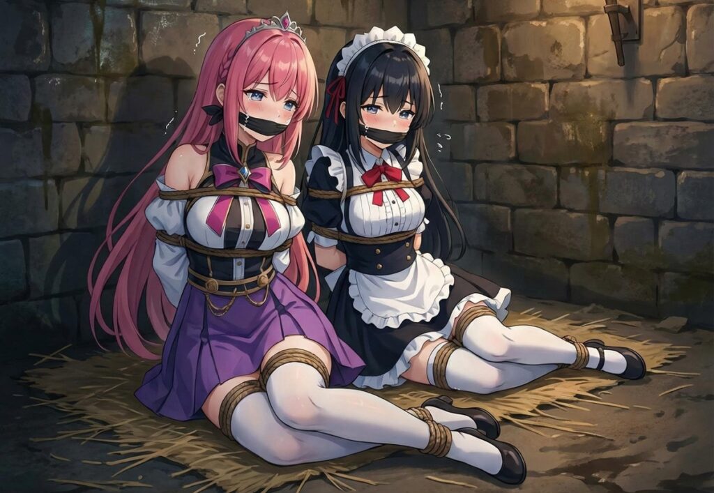 彼らは一言も発さぬまま、手際よく縄を取り出し、二人の手足を縛り上げた。最後に、猿轡が無慈悲に噛まされる。