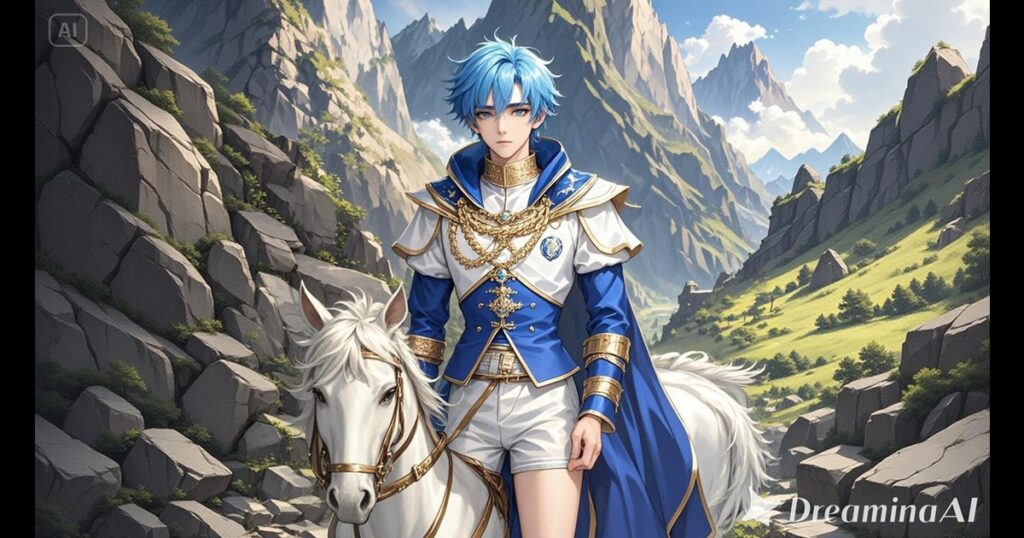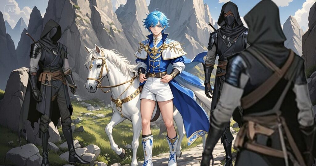 朝霧の残る山肌を風が撫で、草木がざわめく。王太子の外套は翻り、その表情は静かだが、内には強い覚悟を秘めていた。