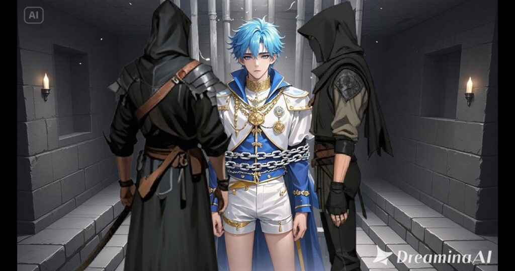 その直後、黒装束の男たちが一斉に飛びかかり、エリオスの腕と胴に鎖を巻きつけ、強引に拘束した。