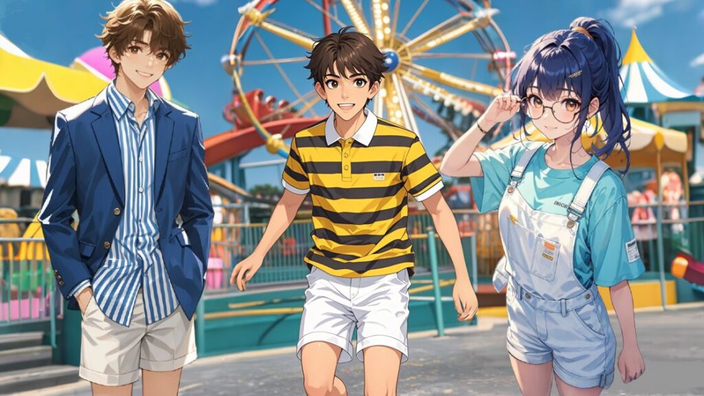 晴れの青空の下、広大な遊園地は子どもたちの笑い声と軽快な音楽に包まれていた。観覧車のカラフルなゴンドラがゆっくりと回り、遠くではジェットコースターの悲鳴と歓声が交錯する。