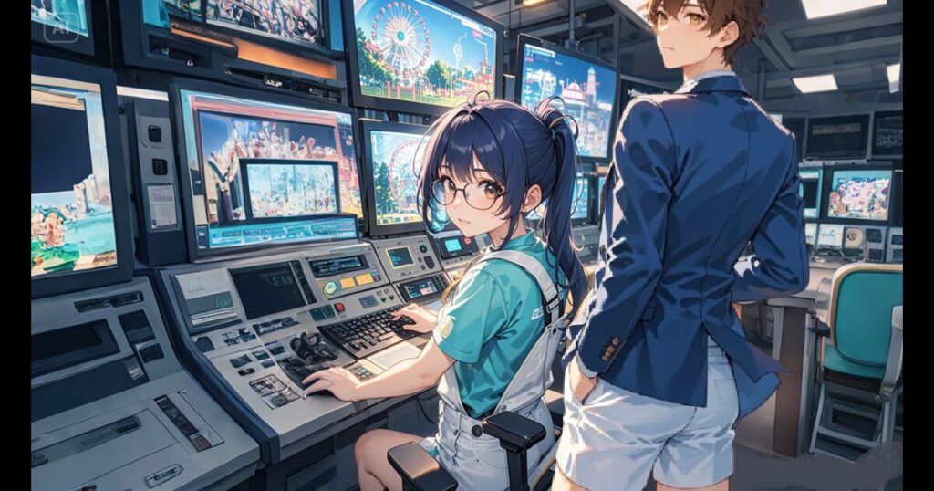 詩織はその中央の操作卓に腰を下ろし、素早く指を動かして映像を切り替えていく。目は鋭く、息を詰めるように集中していた。