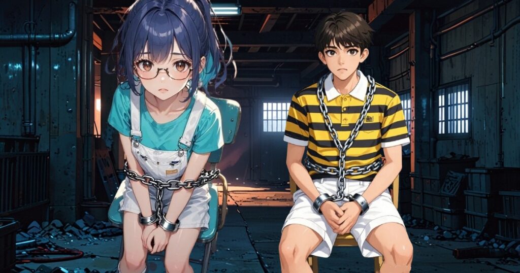 その中央に、ひとりの少年が椅子に手錠で拘束されて座っていた。