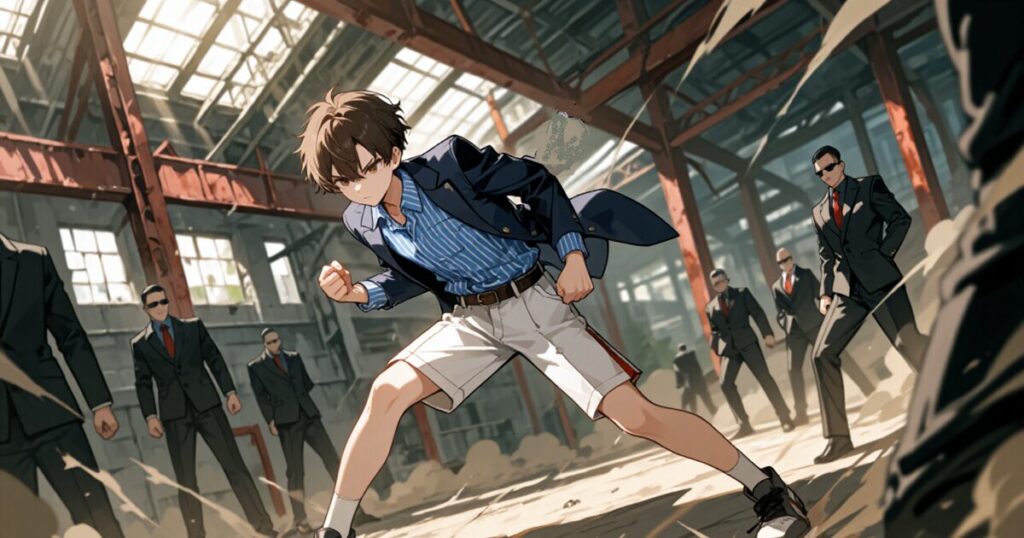 拳が閃光のように飛び、黒服たちは次々と倒れていった。