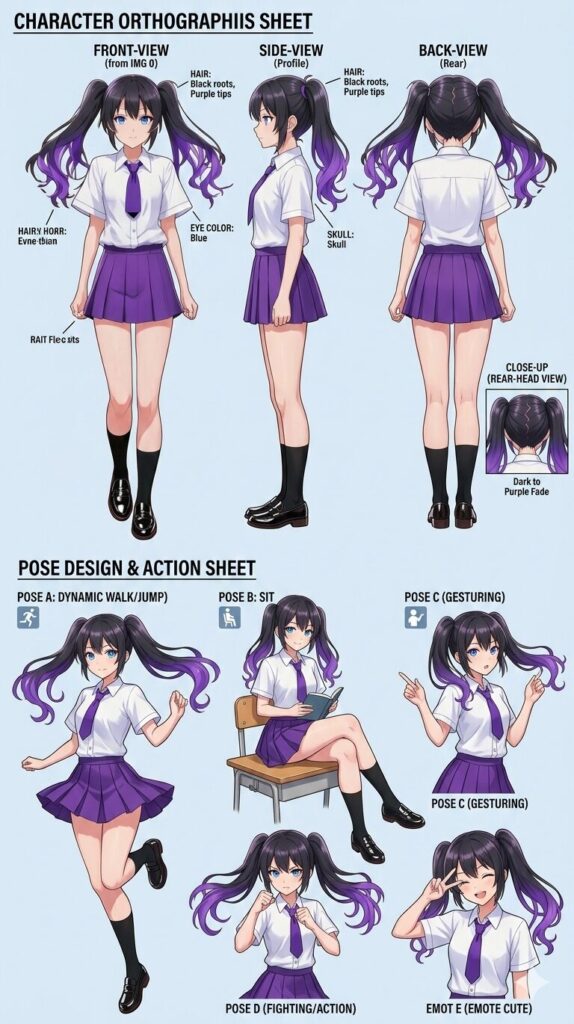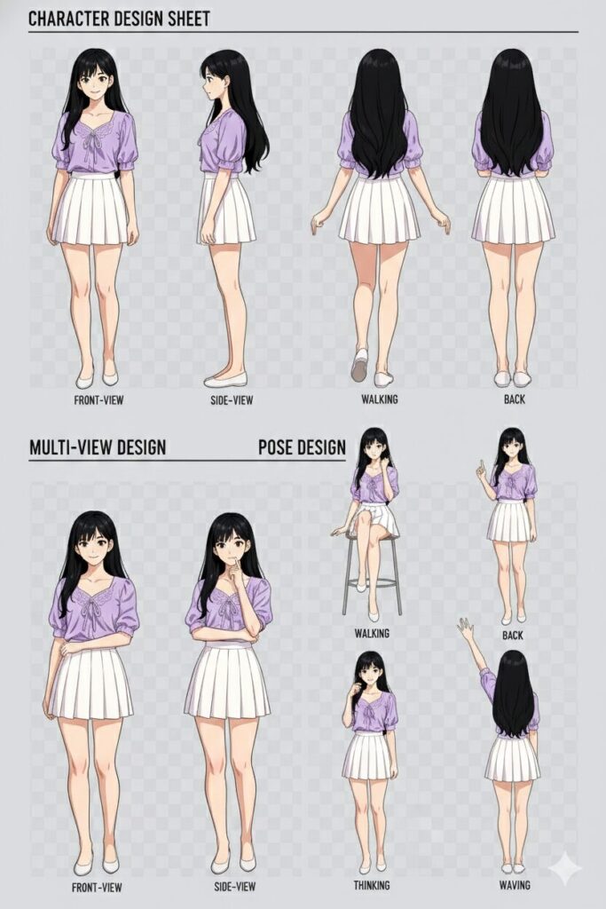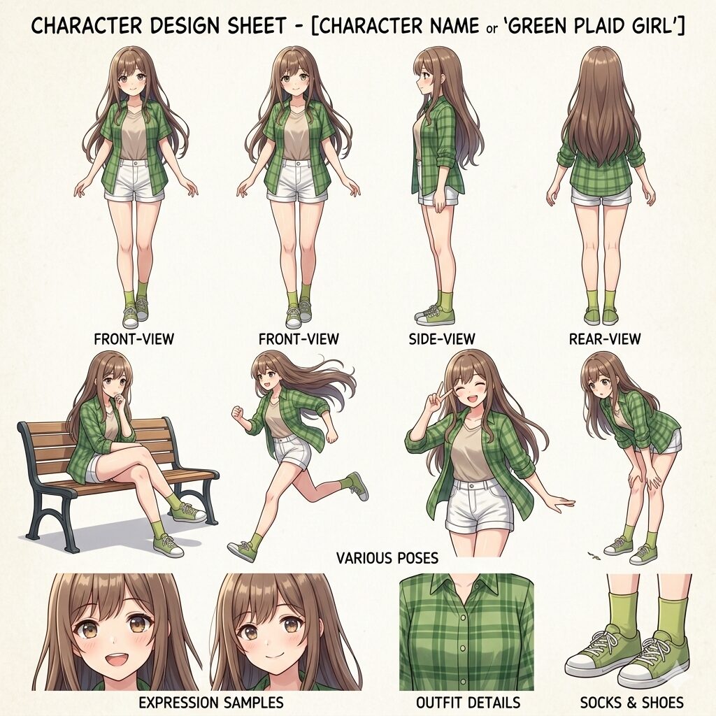 阿左光花私服Bキャラクターデザインシートは、Google Geminiで生成しました。