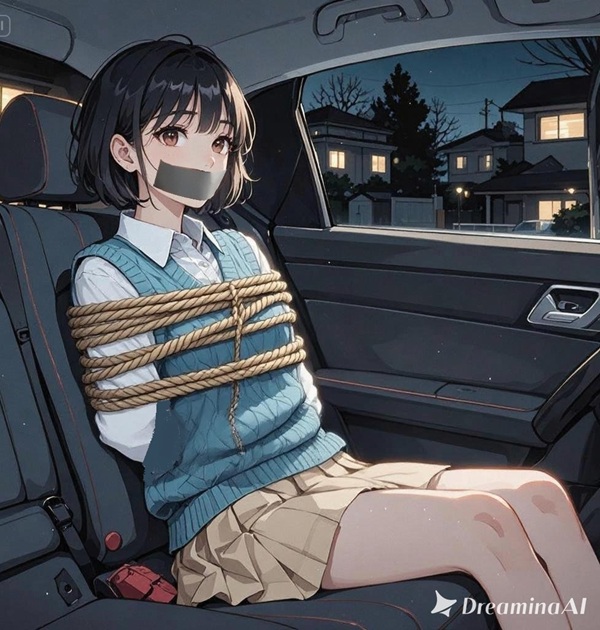 里恵は手足を縛られ、口にガムテープを貼られたまま、車の後部座席に押し込まれていた。