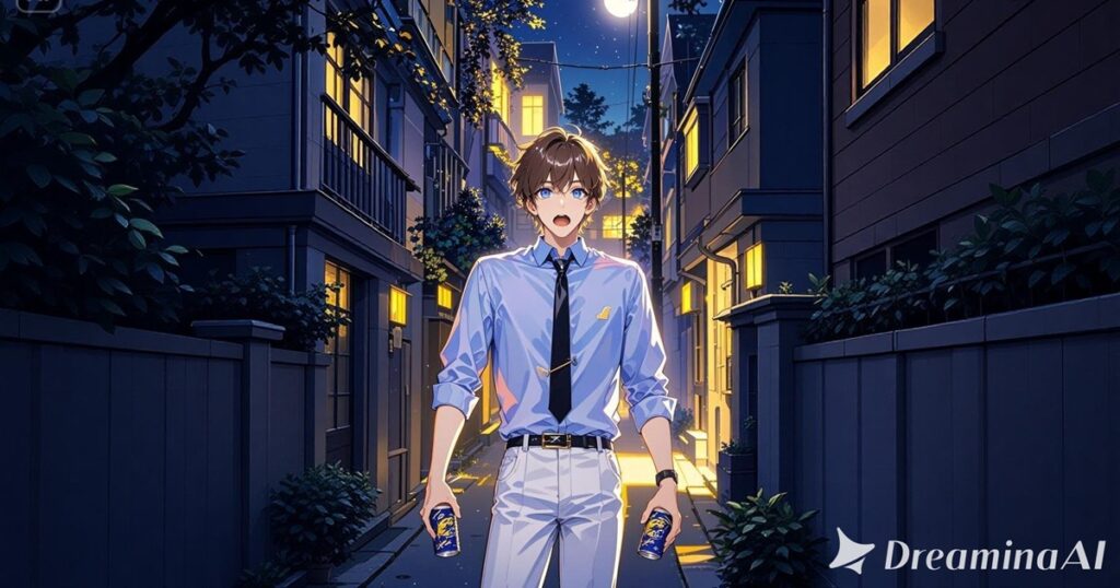 両手に缶ジュースを持って茫然と立ち尽くしている桜庭陽平は、Dreamina: Create realistic talking avatars with AI avatar generatorで生成しました。