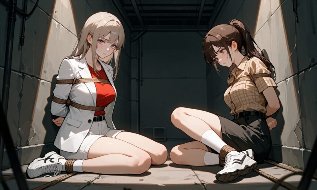 縛られている鷹松優姫と笹南侑衣梨は、PixAI – AIイラスト·AI画像専用の投稿&生成サイト(無料)のモデルTsubakiで生成しました。