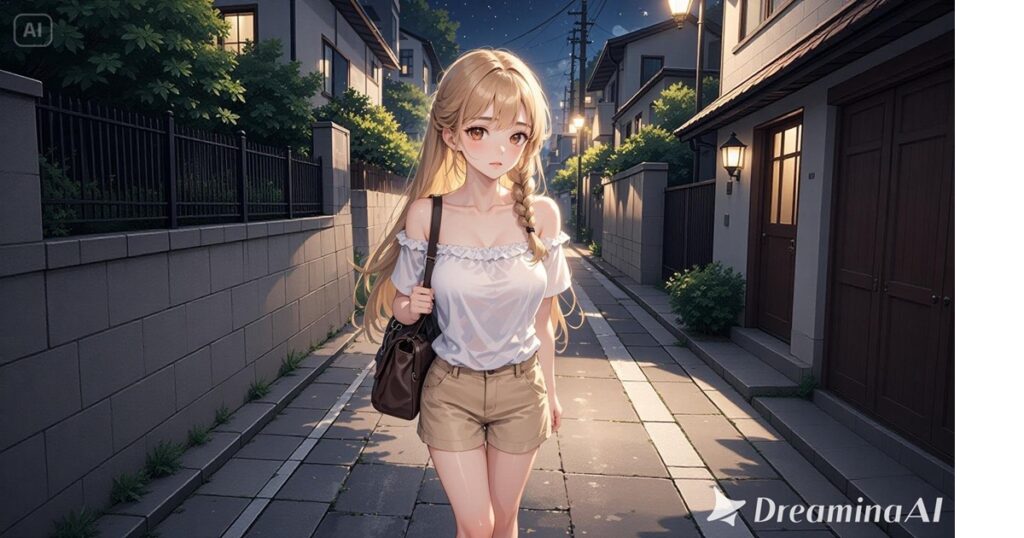 瑠璃華姐さんや優姫さんみたいな「茶色と灰色の中間みたいな髪色」ってAIで生成するのって難しいのです。「亜麻色」とプロンプトに入力するとその色に近い感じを出せることが多いのですが、今回は金髪にかなり寄っちゃいましたね💦