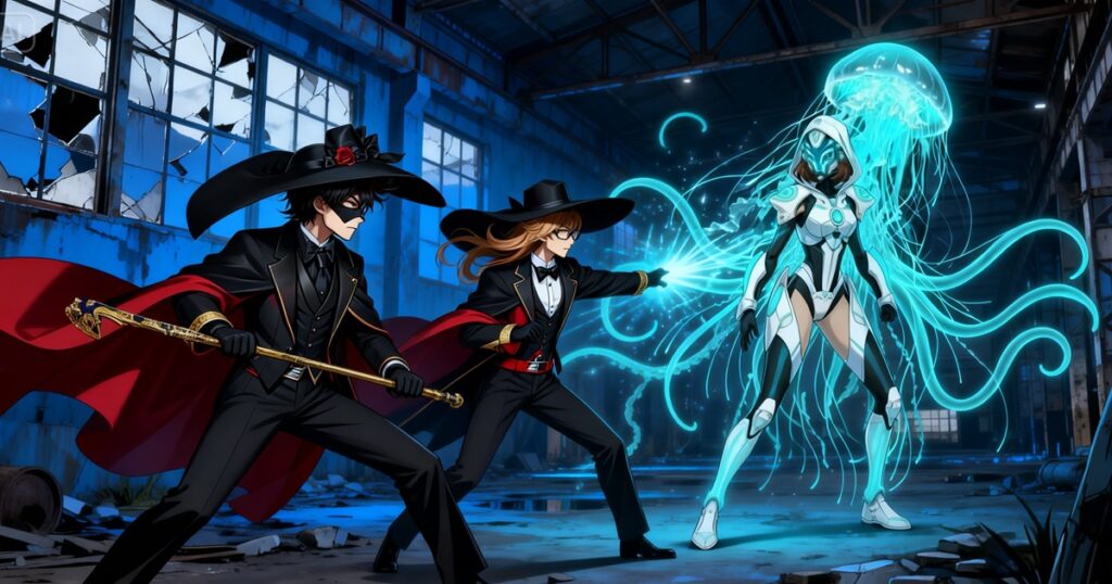 人の形をした、クラゲのような女怪人が、天井付近から静かに降りてきた。