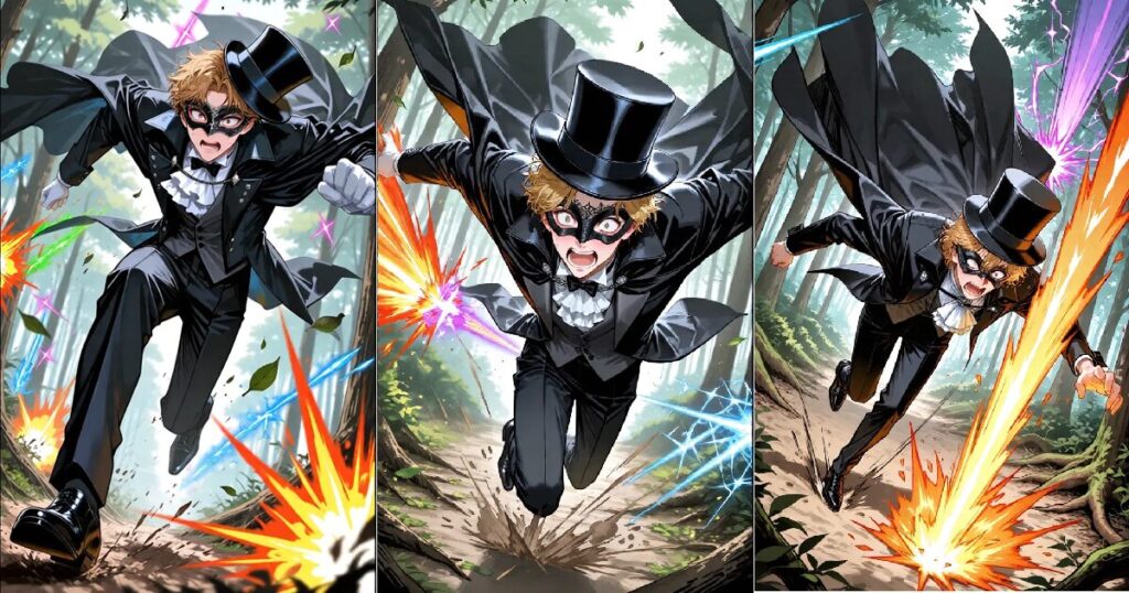 黒い光が渦を巻き、現れたのは黒のシルクハットにマスカレードマスク、黒いタキシードを纏った怪盗紳士――